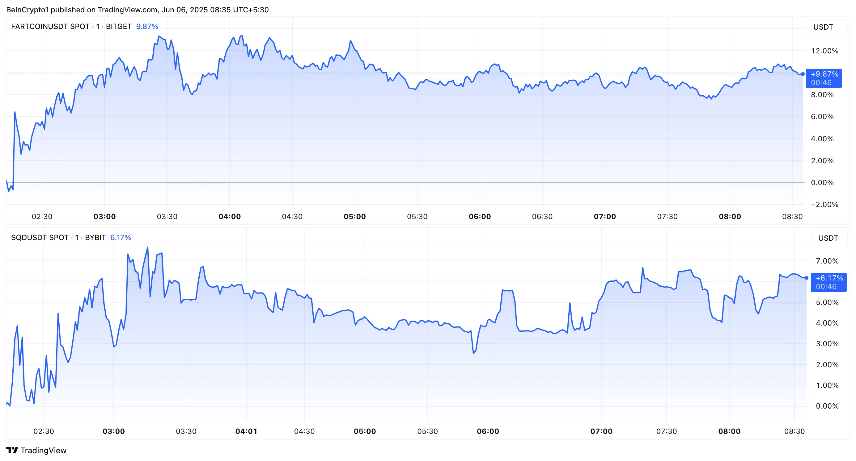 SQD, por otro lado, experimentó un aumento más modesto, subiendo un 9% tras el movimiento de Coinbase. Después de una ligera corrección, SQD tenía un precio de 0,20 dólares al momento de la publicación, manteniendo una ganancia del 6,1%.