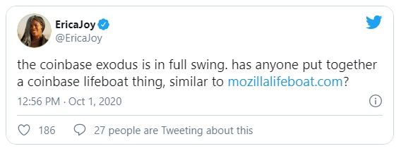 — Coinbase 🛡️ (@coinbase) October 2, 2020