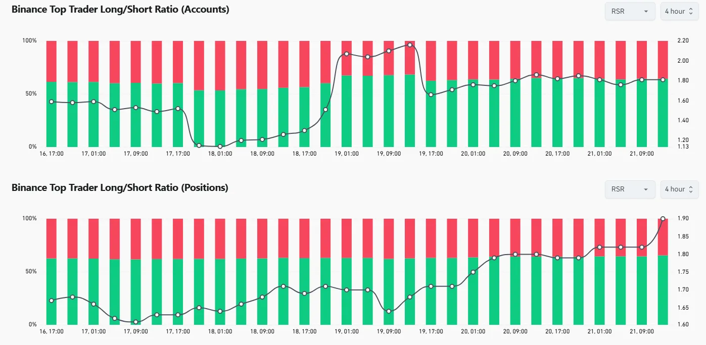 A medida que el activo se prepara para su debut en Coinbase, los principales traders en Binance están mostrando una fuerte posición alcista. En Binance, la relación largo/corto de los principales traders mide la proporción de posiciones abiertas totales mantenidas como largas por el 20% superior de cuentas por saldo de margen.