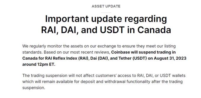 SponsoredRazones de la decisión de Coinbase de suspender trading de USDT, DAI y RAI para usuario de Canadá