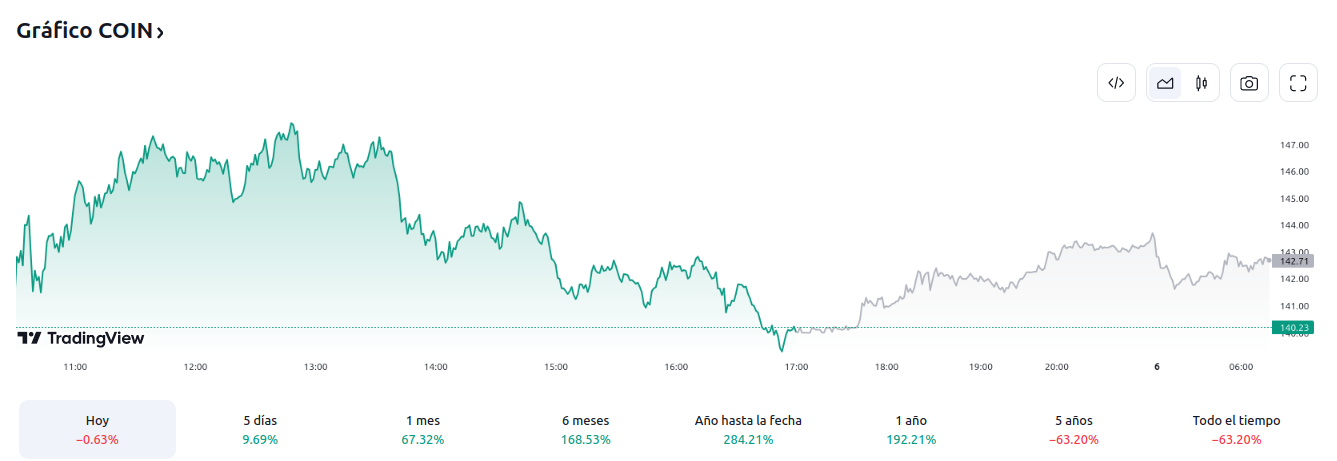 La venta total de Ark Invest asciende a 237,572 acciones COIN a un precio promedio de 140.20 dólares. Al mismo tiempo, la empresa también vendió acciones de Grayscale Bitcoin Trust por valor de 5,9 millones de dólares a través de ARKW.