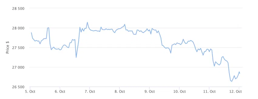 En el momento de esta publicación, el precio de Bitcoin es de 26,835 dólares.