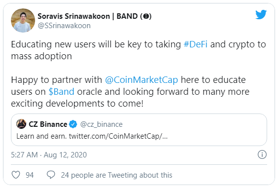 Band Protocol, un oráculo de datos en cadena que permite la conexión entre datos del mundo real y contratos inteligentes, será el primero en aparecer en la plataforma.