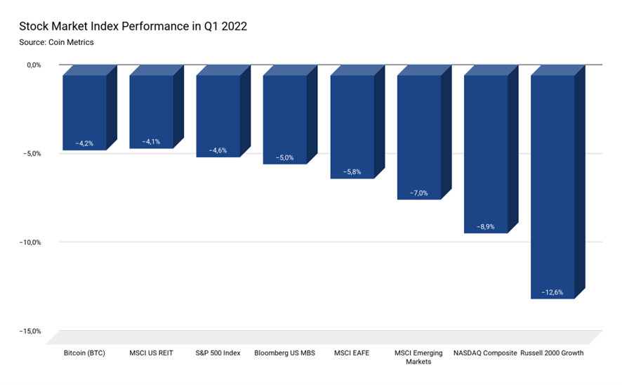 Los datos entre 2016 y 2021 muestran que el rendimiento medio mensual del Bitcoin fue -0,8% en enero, 14,5% en febrero y -6% en marzo. Además, cuando se compara con los valores tecnológicos y otros activos de riesgo, al Bitcoin le ha ido bastante bien: el índice S&P 500 cayó un -4,6% y el Nasdaq Compuesto se debilitó un -8,9% en el mismo trimestre.