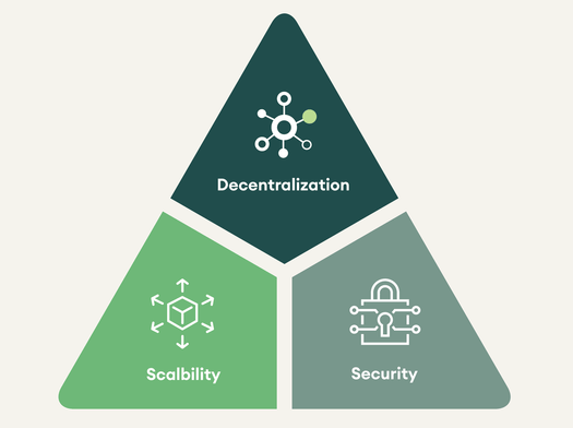 Según el trilema de la escalabilidad, la plataforma blockchain solo puede centrarse en dos de estas tres características, y por tanto la implementación final siempre exige hacer concesiones.