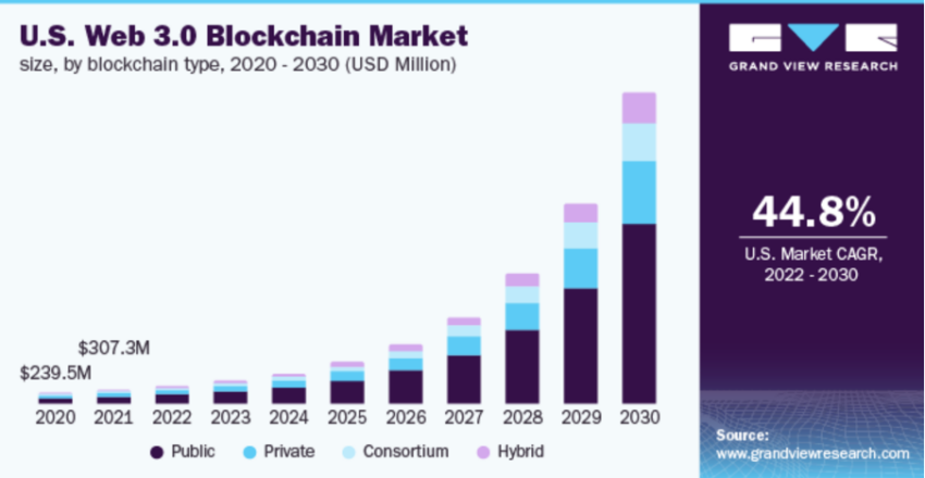 Incluso el mercado de la ciberseguridad sigue infravalorado en el momento de la publicación. La adopción generalizada del mercado de la blockchain sigue siendo directamente proporcional al mercado de la ciberseguridad, especialmente después del colapso de FTX. Arrojando algo de luz sobre el potencial del primero, aquí hay un gráfico que arroja algo de luz sobre esta narrativa.