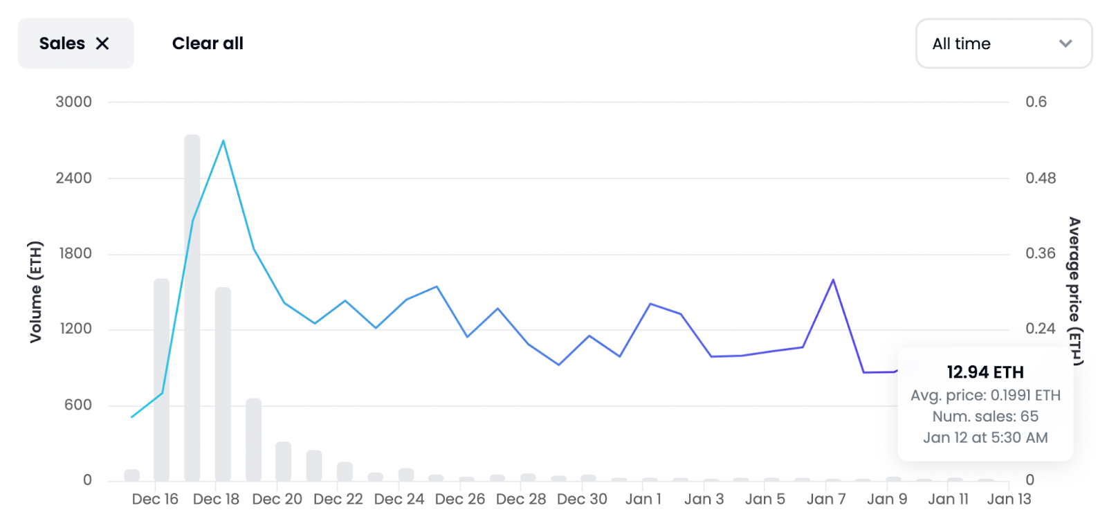 El precio suelo de la colección ha bajado 80%. Al momento de escribir, está en 0.178 ETH desde un pico de 0.84 ETH.