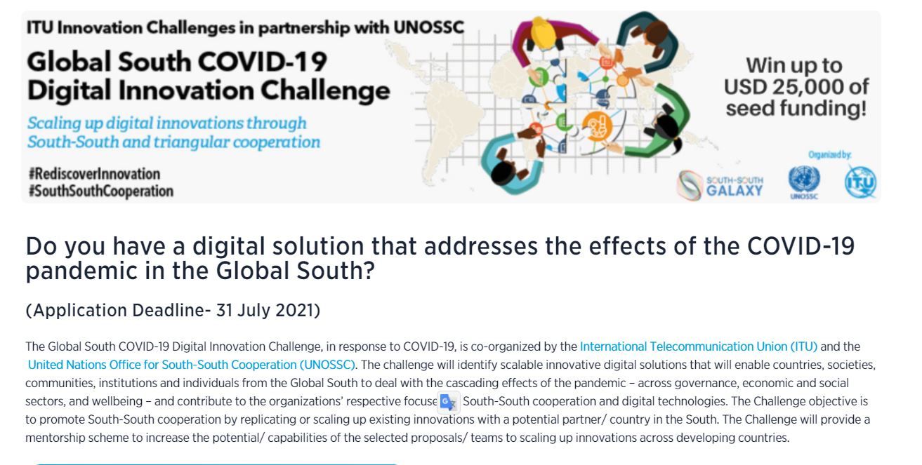 La primera convocatoria se llama “Desafío de Innovación digital COVID-19 del sur global” y busca encontrar soluciones digitales que permitan a gobiernos y comunidades la transmisión del virus mediante el uso de tecnología blockchain, Inteligencia Artificial e Internet de las Cosas. (IoT, por sus siglas en inglés)