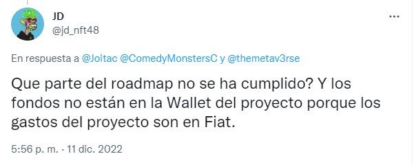 “Mi objetivo con todo esto es llegar a la verdad y lograr que Bobby Comedia hable públicamente sobre lo sucedido. También busco dejar al CMC como el ejemplo perfecto de lo que no debes hacer cuando lanzas un “proyecto” NFT”.