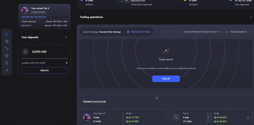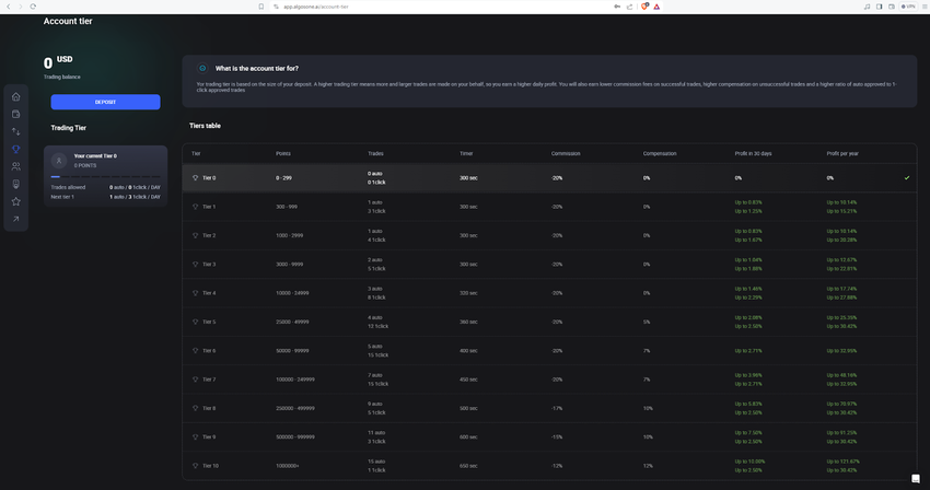 Dependiendo de la cantidad que deposite en AlgosOne, se le asignará un nivel de trading. Cada nivel viene con sus ventajas y beneficios. Puede obtener más información sobre los niveles de trading a través de este enlace.