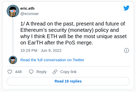 El modelo monetario y de seguridad de Ethereum podría convertirlo en el activo más exclusivo de la Tierra después de la Fusión (The Merge, en inglés). Eso es según el analista de Ethereum ‘@econoar’ que ha profundizado en las cifras posteriores a la Fusión y la economía de la red.