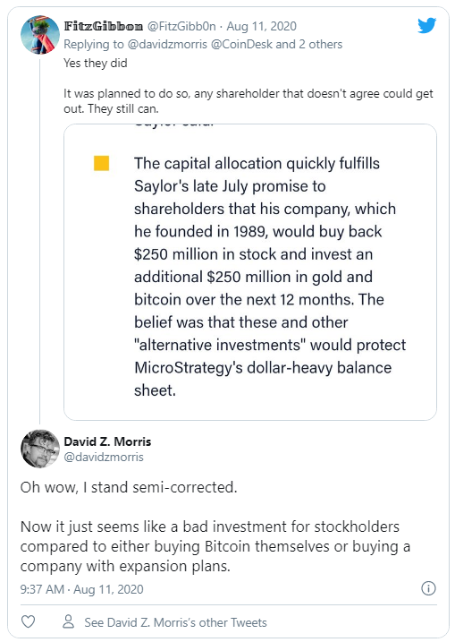 Después de meses de discusión, dijo Saylor, la compañía decidió que Bitcoin era superior al efectivo como reserva. Citó la inflación y la devaluación del dólar debido al coronavirus.