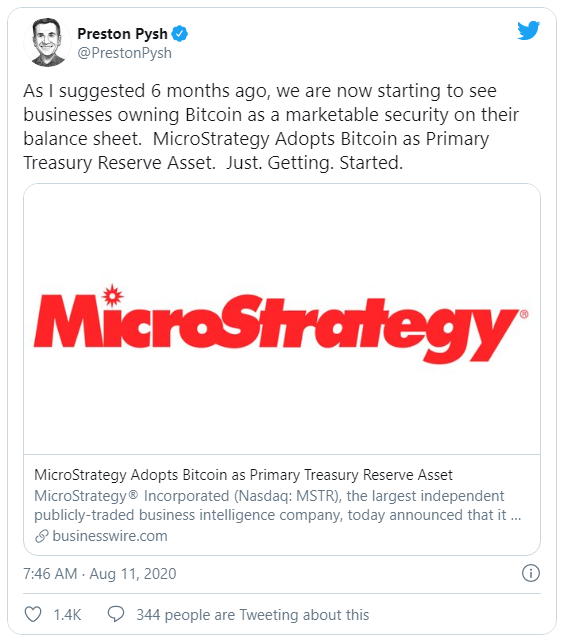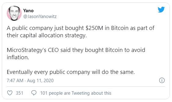 Michael J Saylor, CEO de MicroStrategy, anunció hoy que su compañía ha comprado una cantidad masiva de BTC. Lo ve como una protección contra la inflación. Resumió su creencia en Bitcoin a través de un comunicado de prensa: