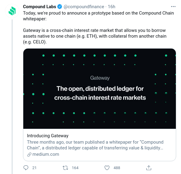 Compound Chain, anunciado por primera vez el 18 de diciembre, prometió una plataforma de activos múltiples que permitiría la transferencia de valor y liquidez entre DLT pares.