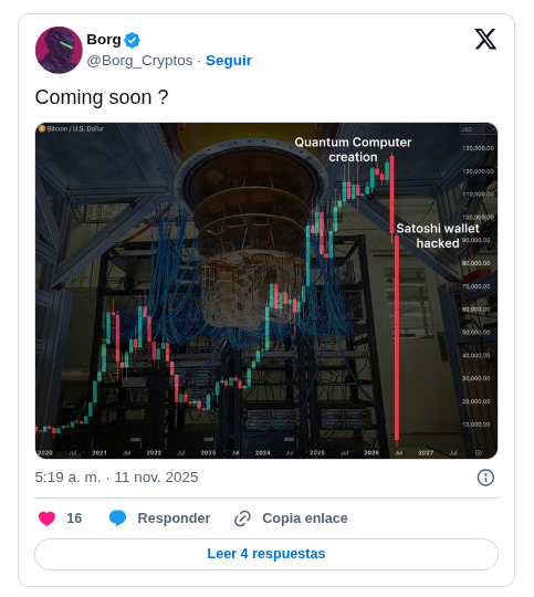 La computación cuántica Bitcoin está en el centro del último debate cripto tras un post viral en X del analista Borg. En un gráfico, sugiere que un ordenador cuántico podría hackear la mítica wallet de Satoshi Nakamoto en 2026, provocando un colapso de precio.