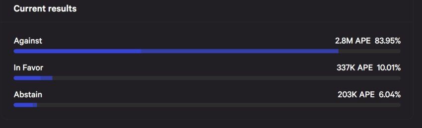 La Comunidad ApeCoin rechazó una propuesta que sugería la creación de una nueva serie de NFT. ApeCoin Armory Club y Ape Coin Pet Club fueron las dos colecciones en cuestión.