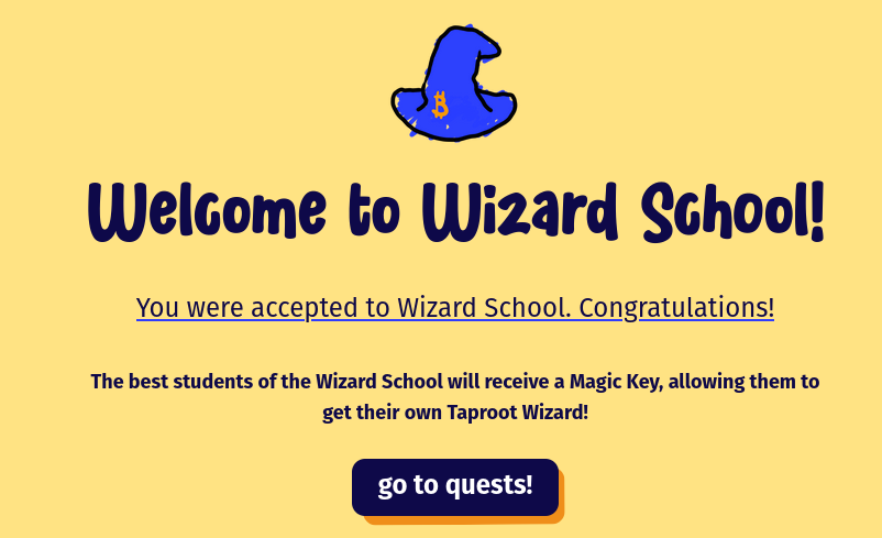 El programa consiste en un conjunto de 4 lecciones, 2 de las cuales ya fueron cerradas, y que los usuarios pueden cursar para aprender, pero también para tener la oportunidad de ganar un NFT de Taproot Wizards.