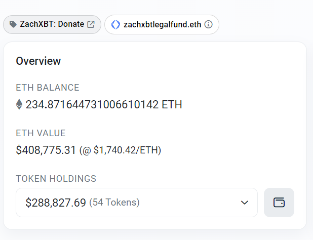 Desde su llamado a donaciones, un monedero etiquetado como Zachxbtlegalfund ha recibido más de 690,000 en diferentes criptomonedas de más de 500 donantes.