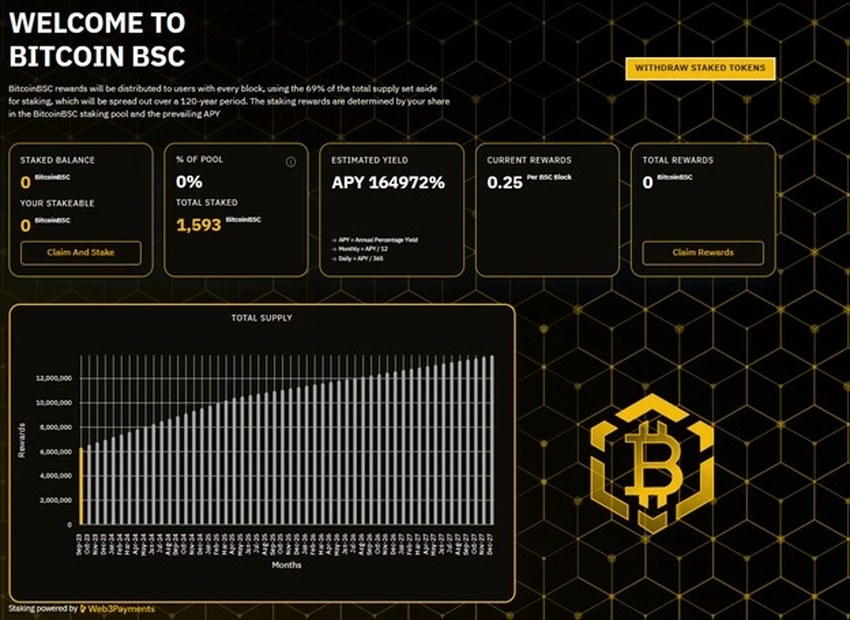 Una característica atractiva de Bitcoin BSC es la posibilidad de realizar staking con los tokens BTCBSC.