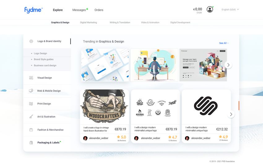 Al igual que los mercados independientes populares en línea convencionales (léase: centralizados), FYD también da la bienvenida a trabajadores independientes de prácticamente todos los ámbitos de la vida, incluidos diseñadores web, contables, consultores, programadores, animadores, autores y productores de contenido en línea, solo por nombrar algunos.
