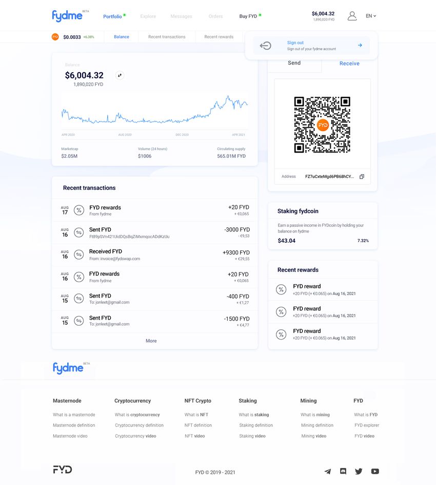 Puede guardar su alijo en su monedero FYD para ayudar a proteger la red (y ganar intereses a cambio) o también puede cambiarlo por Bitcoin en exchanges de criptomonedas como Hotbit y Crex24, entre otros.