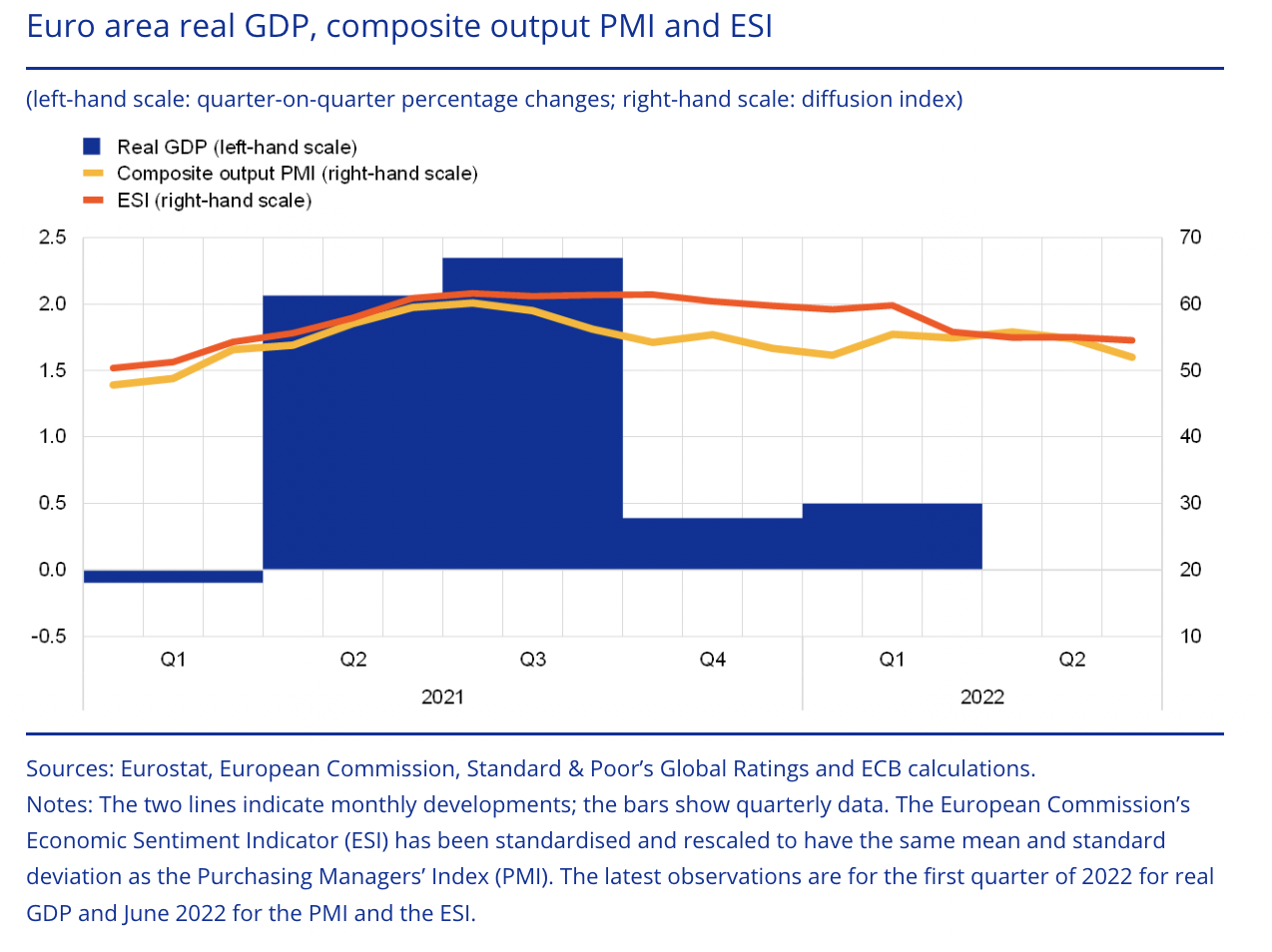 La actividad económica de UE se está desacelerando. La extensión del conflicto de Rusia y Ucrania junto con la histórica tasa de inflación han drenado el poder adquisitivo de los consumidores en sus respectivos países, trayendo consigo una reducción en el consumo y la inversión. Con todo ello se espera la consecuente disminución en la tasa de crecimiento del PIB.