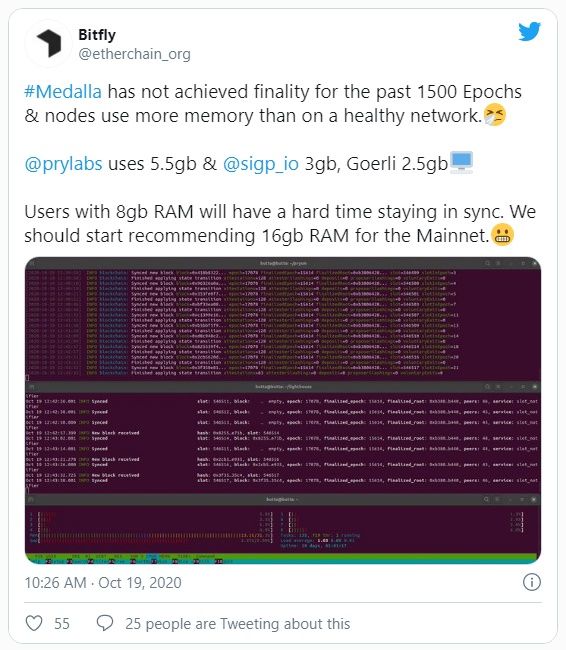 Últimamente, el lanzamiento de Eth2 ha ido avanzando poco a poco hacia el futuro. El 29 de septiembre, los desarrolladores lanzaron la testnet “Spadina”, que falló rápidamente. Más recientemente, los validadores han abandonado la principal testnet “Medalla”, lo que genera dudas sobre qué tan listo está Eth2 en realidad. Según Bitfly, una empresa austriaca de blockchain, la testnet tiene muchos recursos y aún es necesario realizar ajustes.