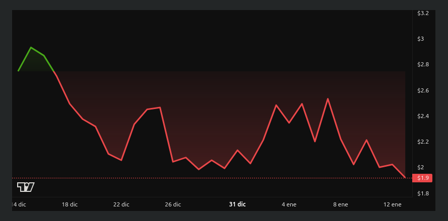 Según datos de BeInCrypto, PIN cotiza actualmente en 1.90 dólares tras caer más del 3% a lo largo de la jornada.