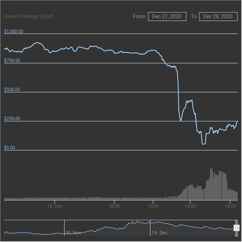 La capitalización de mercado de COVER ya se estaba replegando lentamente, pasando de un máximo de 59 millones de dólares a 33 millones de dólares. Sin embargo, en las últimas horas, cayó a una capitalización de mercado de aproximadamente 1 millón de dólares.