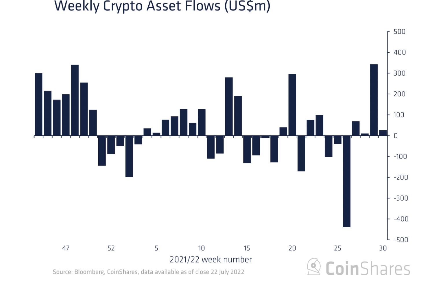 Según el informe semanal de flujo de activos digitales de CoinShares publicado el 25 de julio, hubo una entrada de alrededor de 30 millones de dólares la semana pasada.