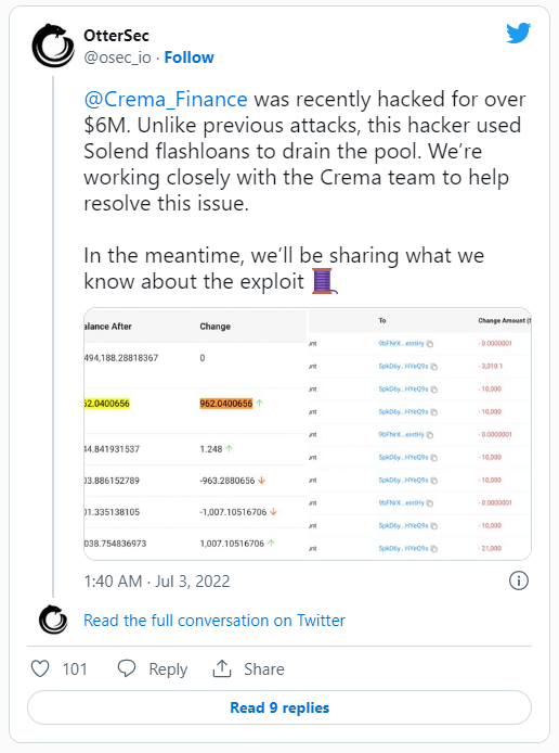 El anuncio se realizó el día de hoy a través de Twitter , y agregó que comunicará más actualizaciones pronto. Además, el equipo ha asegurado los servicios de la firma de auditoría blockchain OtterSec para investigar el exploit.