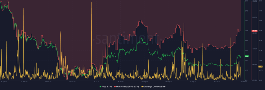 Con la relación MVRV a largo plazo comenzando a revertirse y las salidas de los exchanges notando grandes retiros, el precio ETH podría estar preparándose para una ruptura.