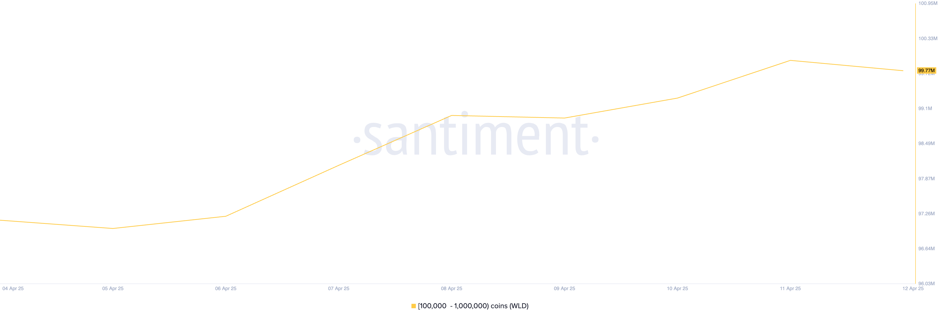 Durante ese período, las ballenas que poseen entre 100,000 y 1,000,000 de WLD han acumulado 2,63 millones de tokens valorados en más de 1,94 millones de dólares.