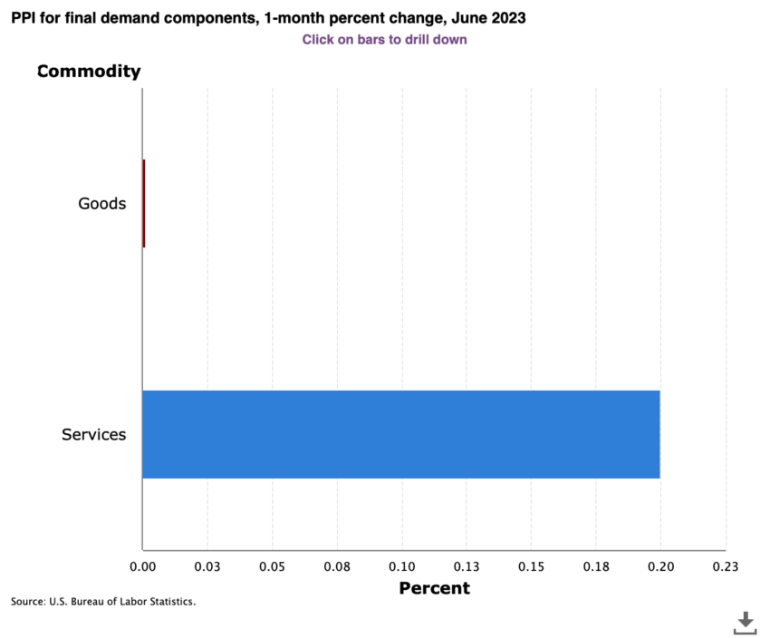 Contrariamente a las predicciones de los economistas, las tasas de inflación parecían estar disminuyendo. Este enfriamiento del IPP de junio se atribuye a la desaparición de los cuellos de botella en la cadena de suministro. Así como la desaceleración de la demanda de bienes impulsada por el aumento de las tasas de interés.