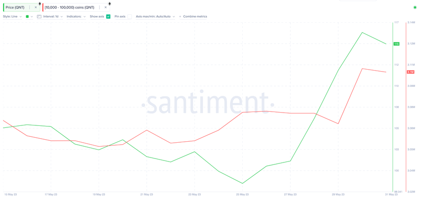 Específicamente, el grupo de ballenas con saldos de 10,000 a 100,000 QNT parece estar liderando la misión de recuperación de precios.