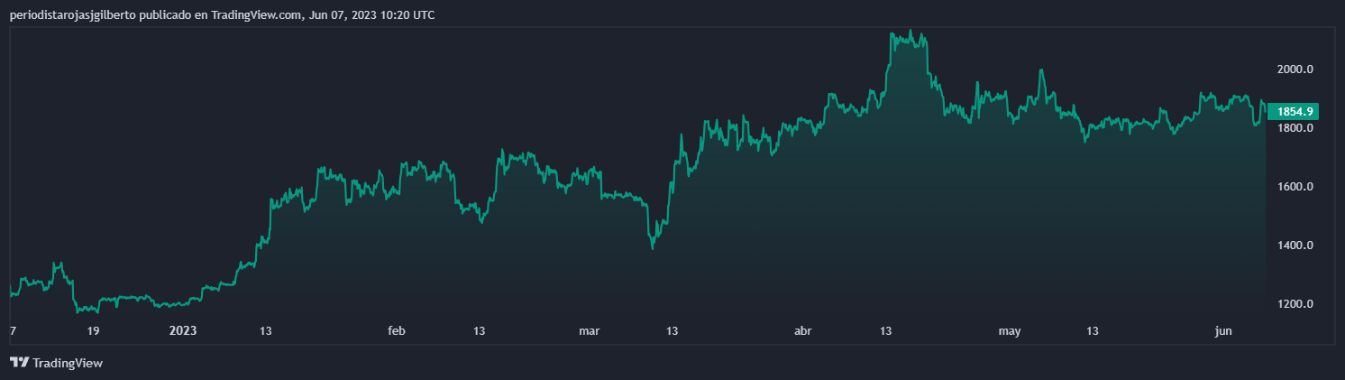 Las imágenes de BTC y ETH coinciden en las caídas, y los números de ambas también son bastante similares. Durante las últimas 24 horas, el precio de Ethereum ha caído casi un 2 %, en la semana ha perdido casi en un 3 % y en los últimos 30 días la cifra lleva casi al 1 %. Mientras tanto, abriendo un poco más el panorama, los últimos seis meses para ETH ha generado rendimientos de más del 44 % y más del 55 % en lo que se refiere a lo que va de 2023.