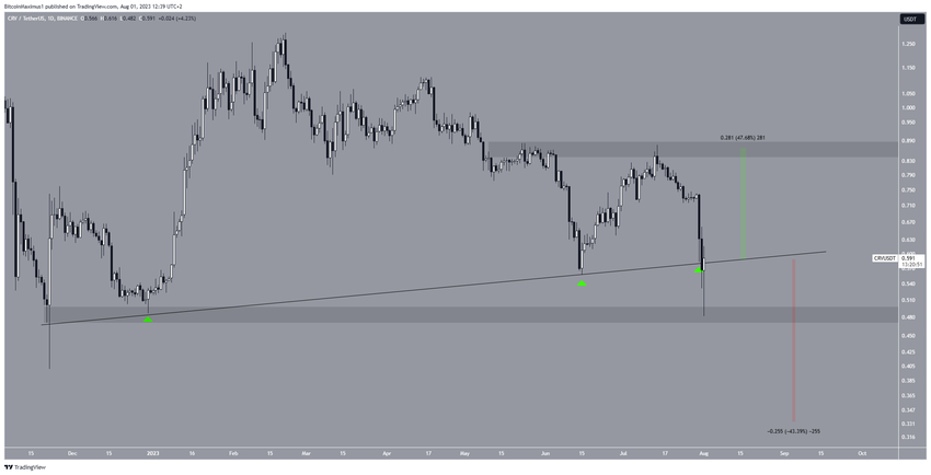 Si bien parecía que el rebote comenzó el 31 de julio, el precio del CRV se rompió rápidamente desde la línea, cayendo a un nuevo mínimo anual de 0.48 dólares.