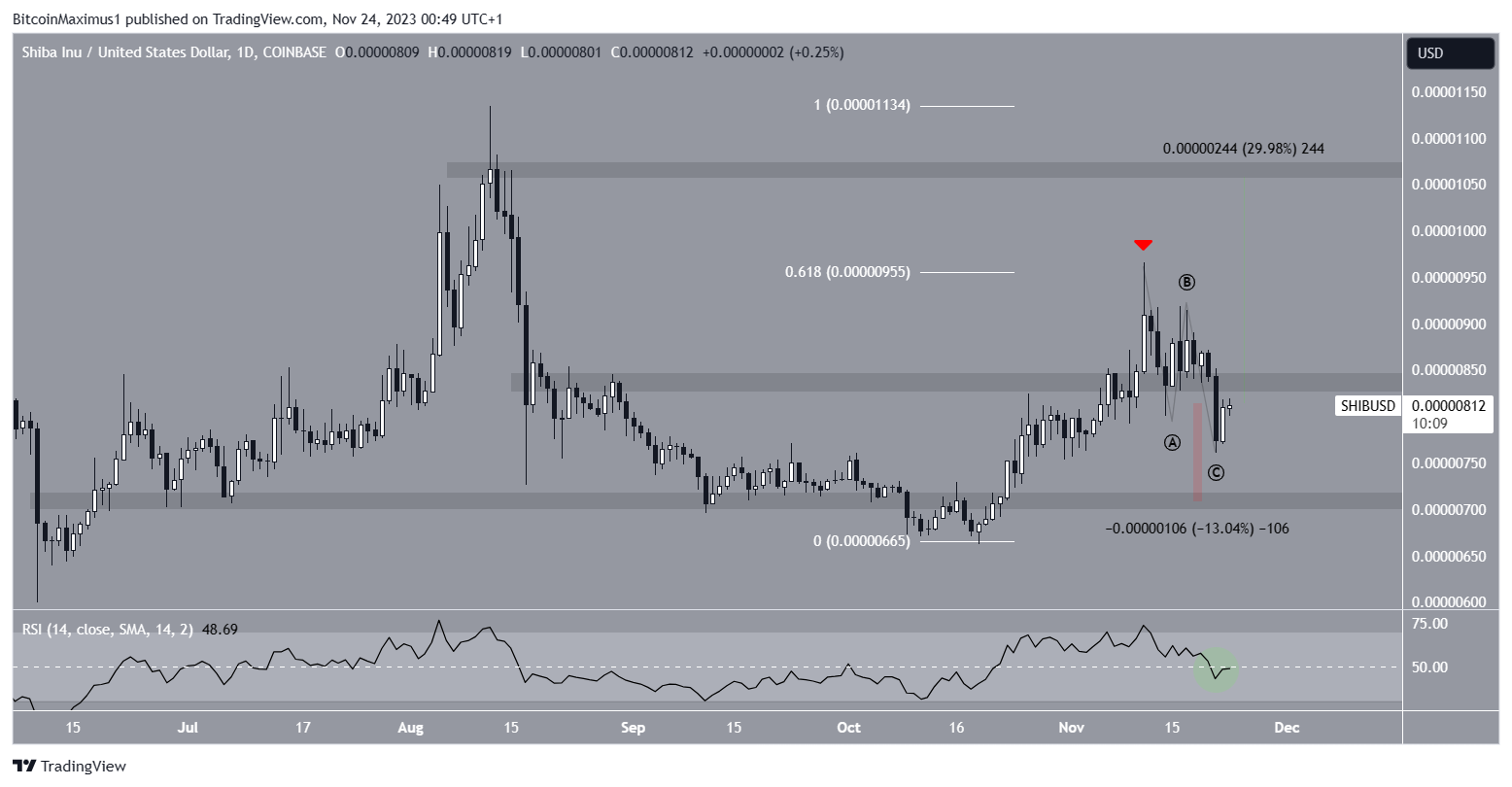 Si la caída continúa, la criptomoneda bajista podría caer a la siguiente área de soporte más cercana a 0.095 dólares.