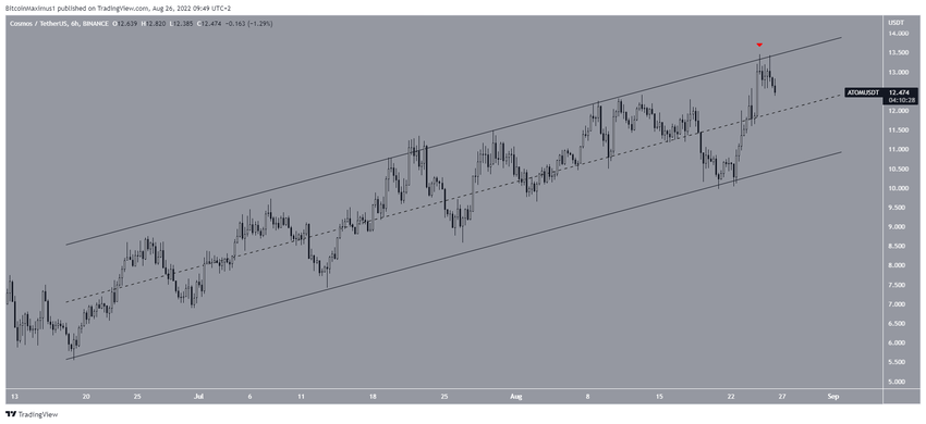 El 23 de agosto, ATOM fue rechazado por la línea de resistencia del canal (icono rojo). Una caída por debajo de la mitad del canal haría más probable una ruptura.