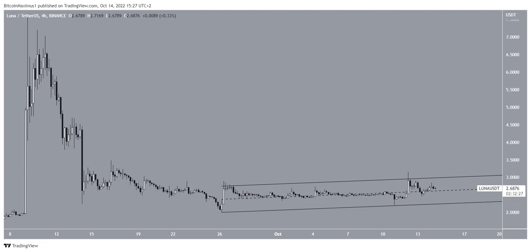 De manera similar al precio de OKB, el precio de LUNA se ha estado negociando dentro de un canal paralelo ascendente desde el 27 de septiembre. Intentó romperlo el 12 de octubre, pero no lo logró.