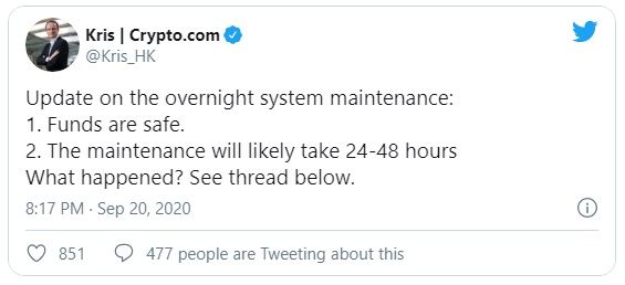 SponsoredSegún él, la interrupción fue causada por un error inexplicable de la base de datos durante la noche el 21 de septiembre (hora de Hong Kong) que aún está bajo investigación. Aseguró a los usuarios que el exchange sufrió pérdidas financieras “insignificantes” y que los depósitos y saldos son seguros y que el servicio normal se restablecerá en 48 horas.