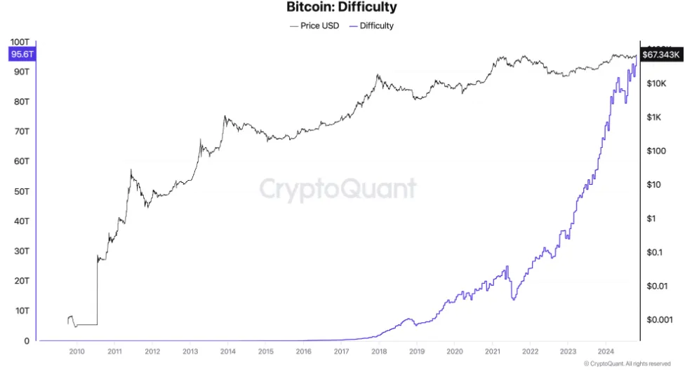 La dificultad de minería de Bitcoin, que mide la complejidad de minar nuevos bloques, ha aumentado un impresionante 378% en solo los últimos tres años. Esto refleja la competencia aumentada dentro de la industria, haciendo casi imposible que los mineros individuales participen de manera rentable.