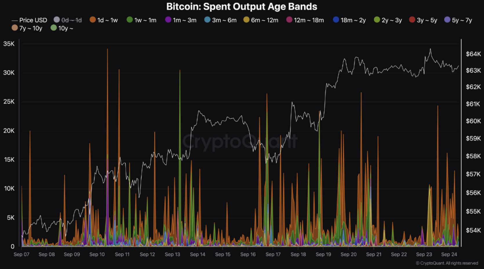 En otro análisis, CryptoQuant resaltó los BTC que se han movido de monederos tras años de inactividad, y en la mayoría de los casos, esas ballenas operan con ganancias, ya que las transferencias son continuas. La mayoría de movimientos se han dado entre el 18 y el 24 de septiembre.