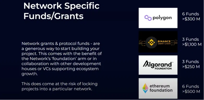 Mientras tanto, otras tendencias incluían instituciones de activos digitales de nivel 1 como Binance Labs, Coinbase Ventures y Kraken Ventures que impulsaban o en su lugar agrupaban fondos. Por último, están los fondos específicos de la red, como se menciona en la captura de pantalla a continuación.