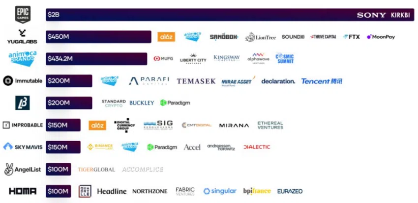 Pasando a las entidades individuales dentro de las categorías, Epic Games, el gigante de los juegos, cerró 2 mil millones de dólares de dinero de inversión del propietario de Sony y LEGO, KIRKBI.