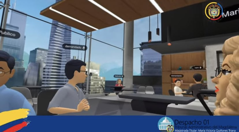 La primera audiencia en el metaverso se realizó en Colombia. La cita fue el miércoles 15 de febrero de 2023 en el metaverso Horizon Workrooms, espacio en el que se reunió el grupo de participantes a través de sus respectivos avatares. Quienes no contaron con el equipamiento respectivo, es decir con las gafas de realidad aumentada, pudieron participar usando la app web en su computador, por medio de videollamada.
