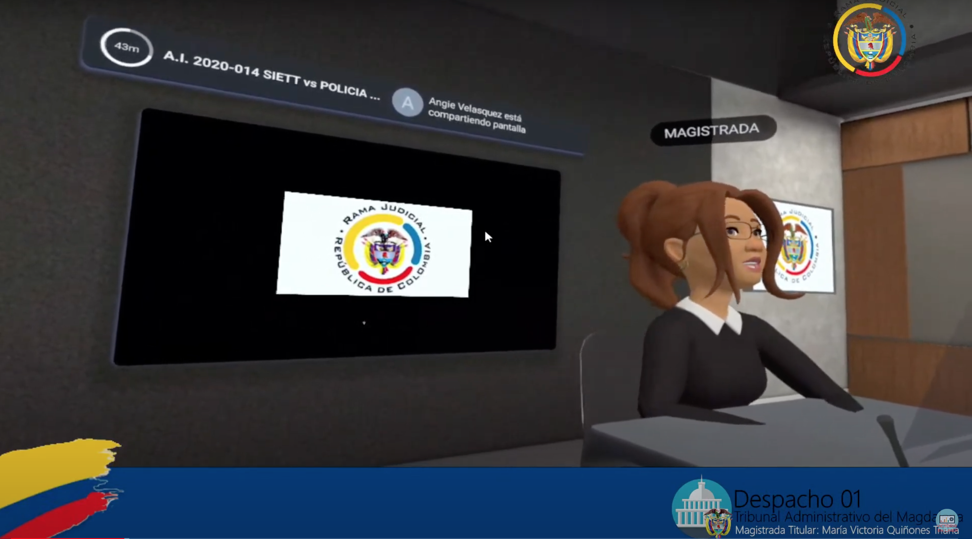 Durante el proceso, la magistrada Maria Victoria Quiñones, quien aceptó la solicitud que le formuló la parte demandante dentro de un proceso que se adelanta contra el Ministerio de Defensa, la Policía Nacional y la Nación, aseguró que realizar la audiencia a través de este medio no vulneraba el debido proceso judicial. Lo anterior lo justificó debido a que el metaverso es concebido como una herramienta tecnológica, y está contemplado en la legislación colombiana.