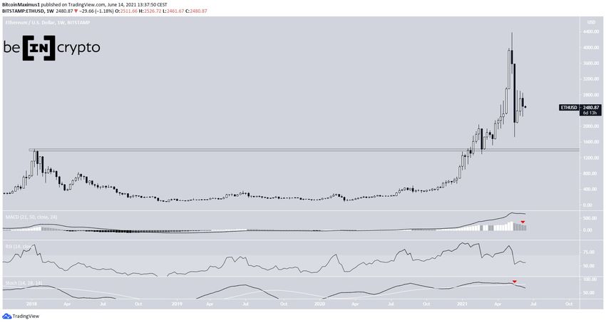 ETH se ha movido a la baja desde que alcanzó un precio máximo histórico el 12 de mayo. El descenso ha sido brusco, culminando con un mínimo de 1730 $ el 23 de mayo. Esto supuso un descenso del 60,50% en sólo 11 días.