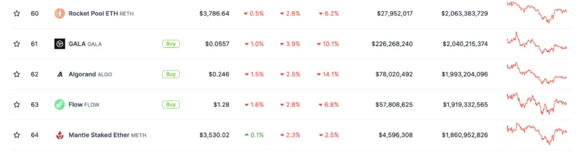 El token GALA se utiliza para administrar la plataforma y comprar elementos del juego en forma de NFT. En el momento de escribir este artículo, el activo ocupa el puesto 61 entre las 100 principales criptomonedas y su capitalización de mercado es de 2,040 millones de dólares.