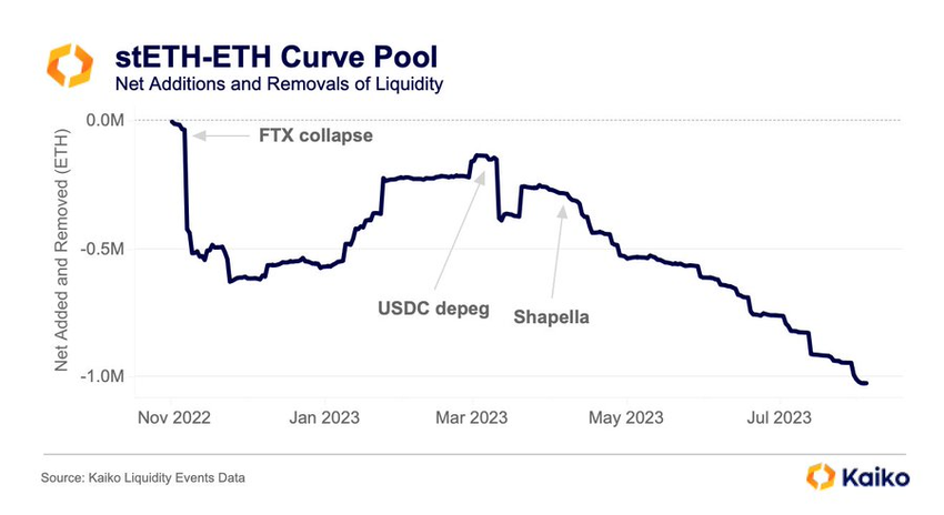 Debido al ataque, el agregador de datos Kaiko informó que el incidente había afectado la confianza en el pool stETH-ETH de Curve. El pool ha seguido registrando grandes retiros, reduciendo la liquidez del token de liquid staking más grande.